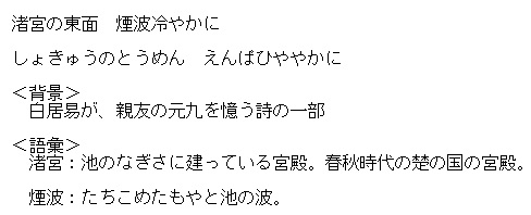 しょきゅう | 池のなぎさに建っている宮殿。 | 解説 |