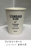 コンビニのファミリーマートで飲む淹れたてコーピーの紙コップ。
