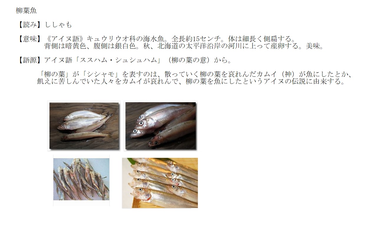 ししゃも | キュウリウオ科の海水魚 | 解説 |