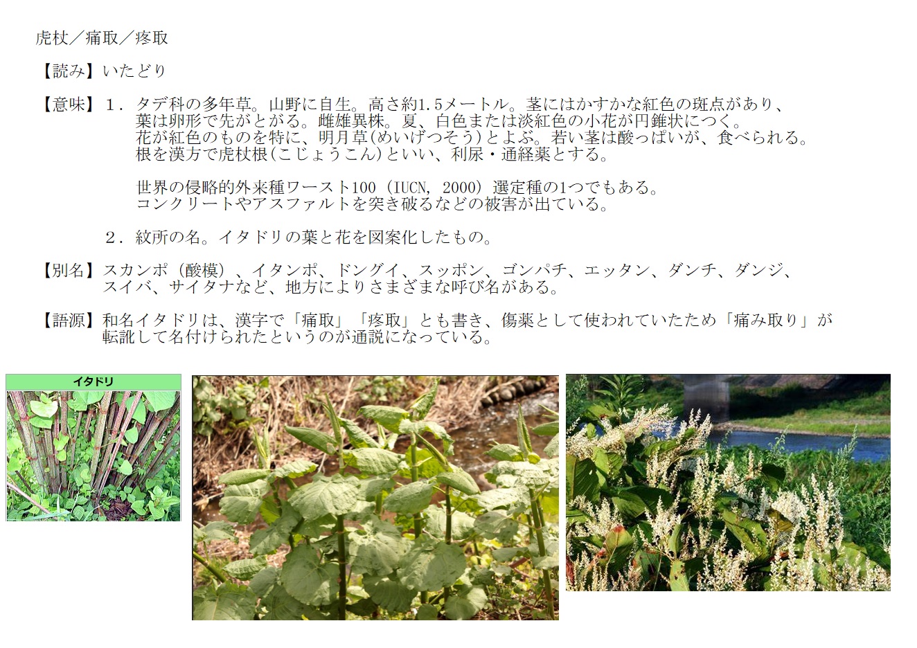 いたどり | タデ科の多年草。山野に自生。高さ約1.5m | 解説 |