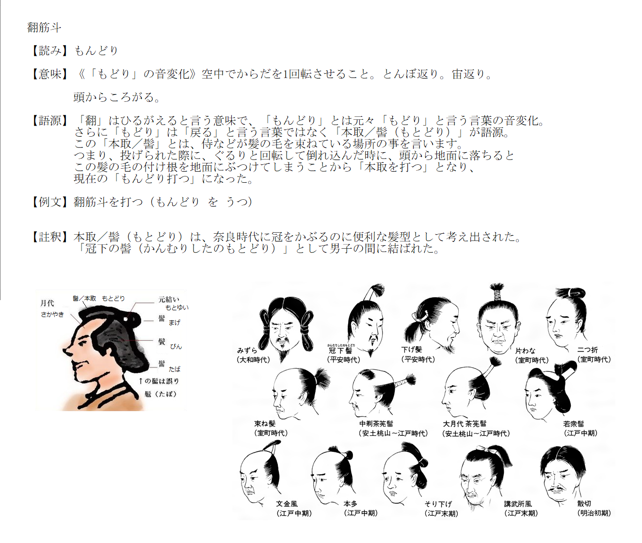 もんどり | 空中で体を1回転させること。とんぼ返り | 解説 |