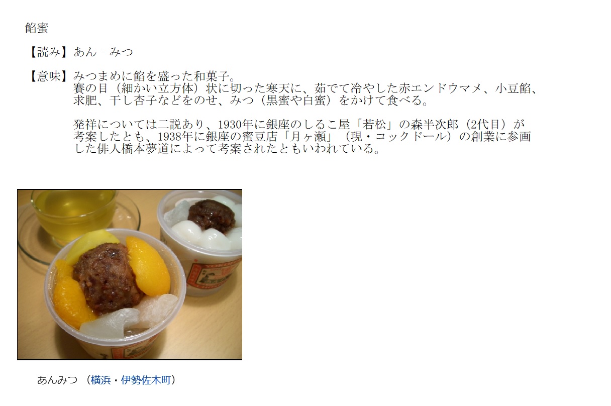 餡蜜 | みつまめに餡を盛った和菓子 | 解説 |