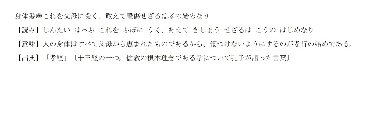毀傷 | 体を傷つけないのが親孝行の始め | 解説 |