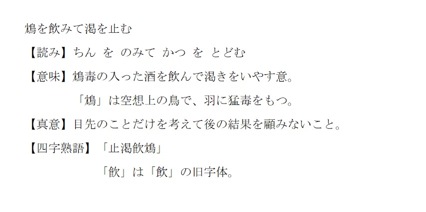 鴆/酖 | 目先のことを考えて結果を顧みない | 解説 |
