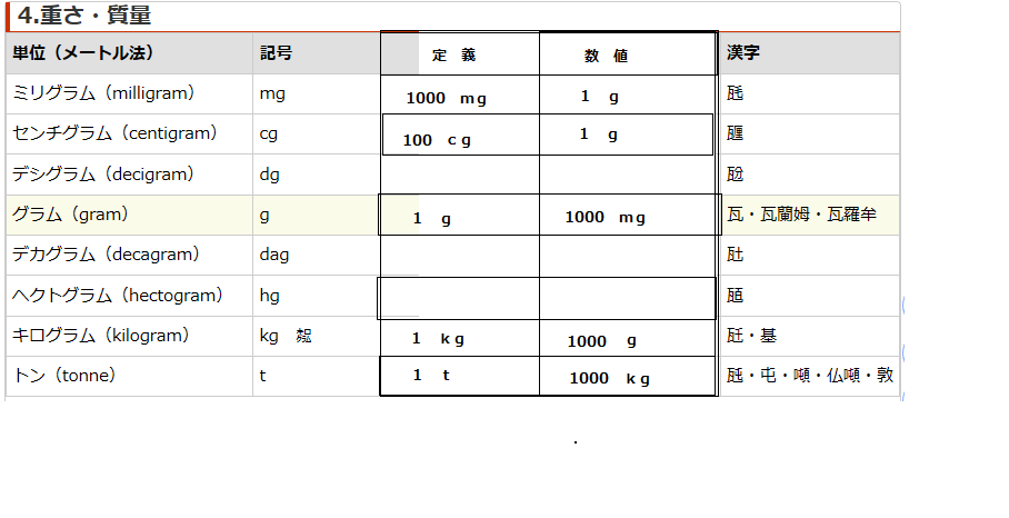 瓱 | 重さの単位。1000mg=1g | 解説 |