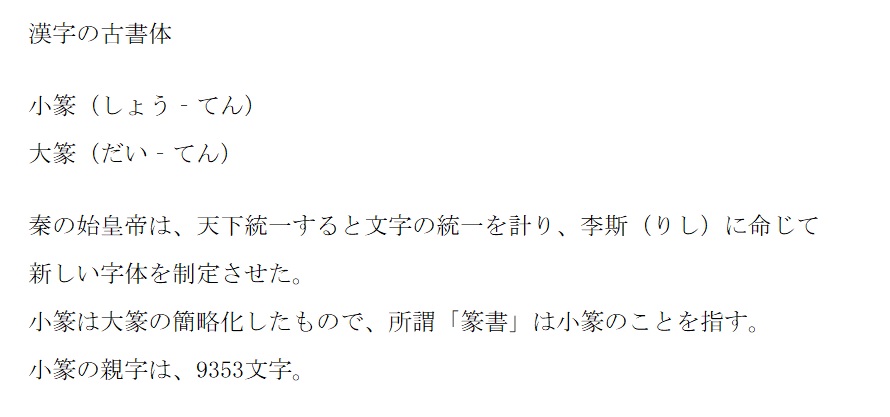 しょうてん | 漢字の古書体の一つ。大篆を簡略化したもの | 解説 |