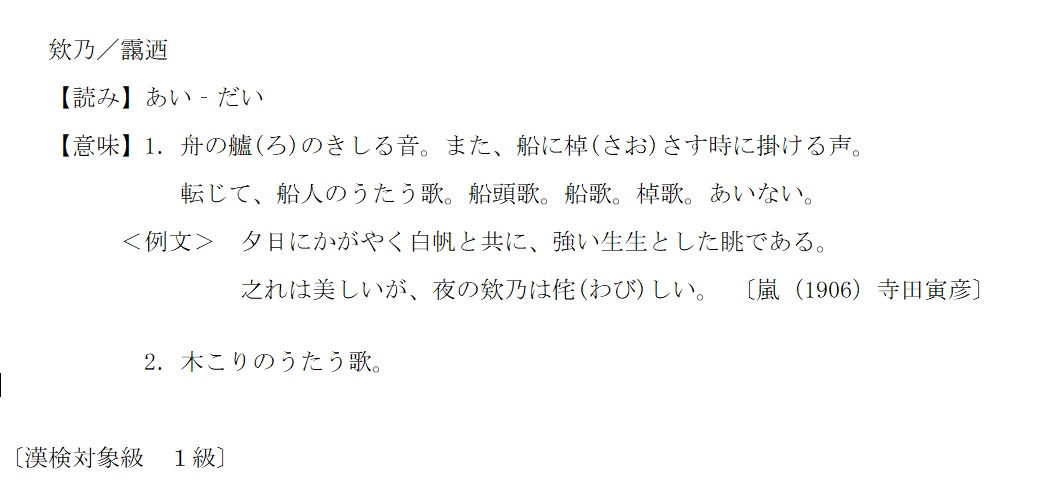 あいだい | 1.船人のうたう歌。船頭歌。2.木こりのうたう歌 | 解説 |