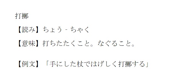 ちょうちゃく | 打ちたたくこと。なぐること | 解説 |
