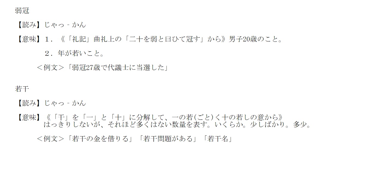 弱冠 | 年が若いこと | 解説 |