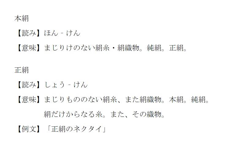ウ | ほんけん。混じりけのない+絹 | 解説 |