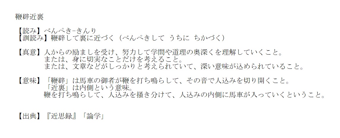また、「鞭辟近裏」の様に複数の意味のあるものが、20問中1問ぐらい出題される。