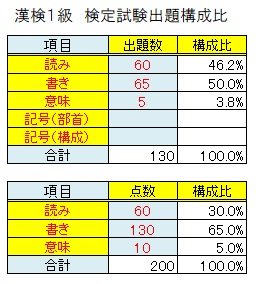 出題数で「読み」と「書き」で96.2%を占める。点数配分でも95%を占める。