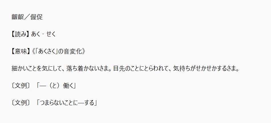 あくせく・・・かか | 小さなことにこだわる様子 | 解説 |