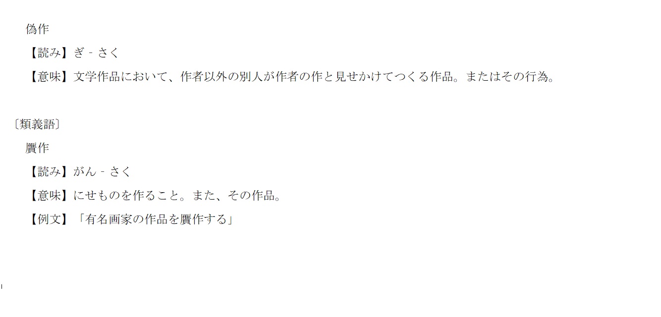 贋作 | ぎさく ≒ がんさく | 解説 |