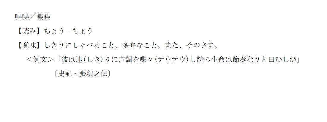 喋喋 | もくもく ⇔ ちょうちょう | 解説 |
