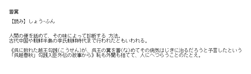 しょうふん | 人糞をなめて病気を占う方法(古代朝鮮) | 解説 |