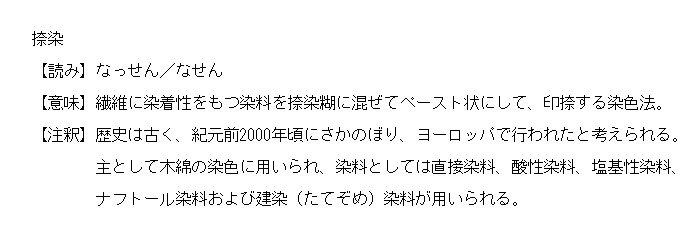 なっせん/なせん | 繊維に印捺する染色法の一つ。 | 解説 |
