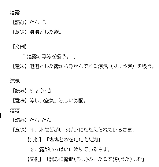 たんろ | 湛湛とした露。 | 解説 |