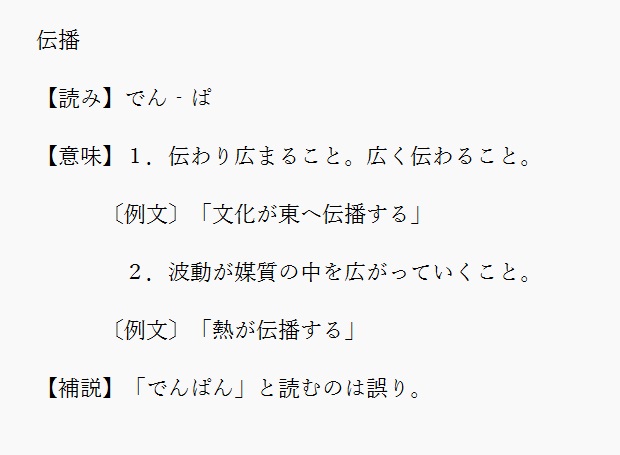 でんぱ | 広く伝わること。 | 解説 |