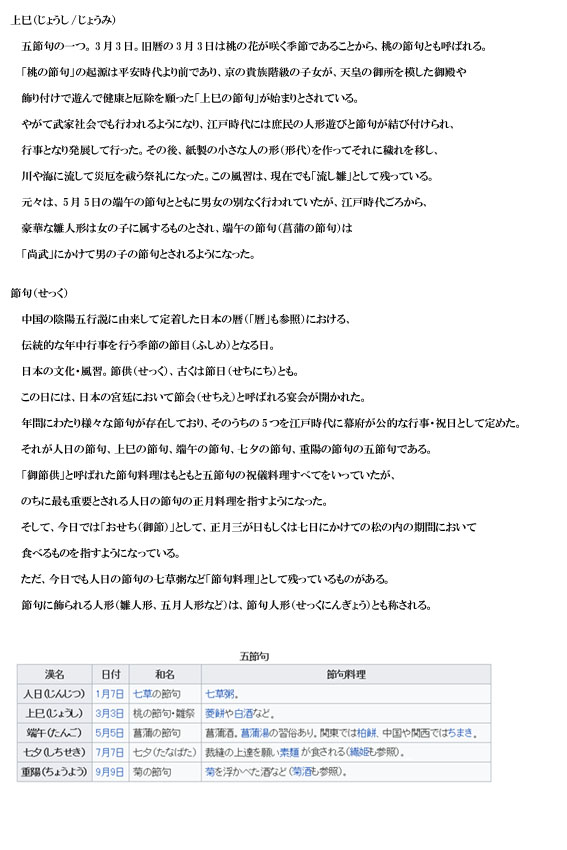 じょうし | 桃の節句。3月3日。 | 解説 |
