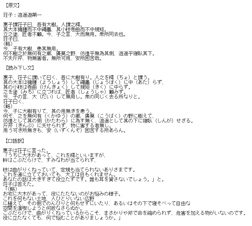 ちょ | にわうるし。無用の木。 | 解説 |