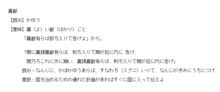 | 9 | 嘉猷有らば則ち入りて告げよ | |