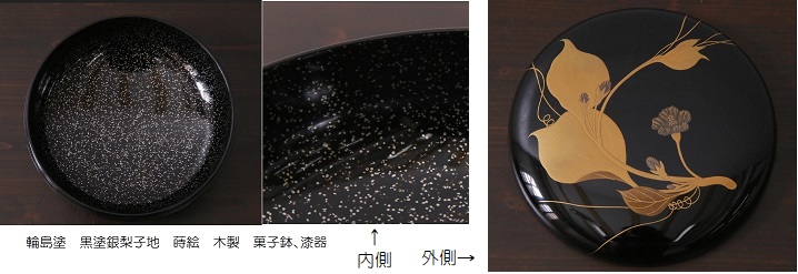 〇銀梨子地(ぎんなしぢ/ぎんなしじ) ・・・ 梨子地の一つ。銀粉をほどこした梨子地。