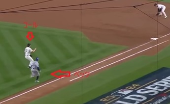コール投手が一塁カバーに入らなかった、あのプレーです。