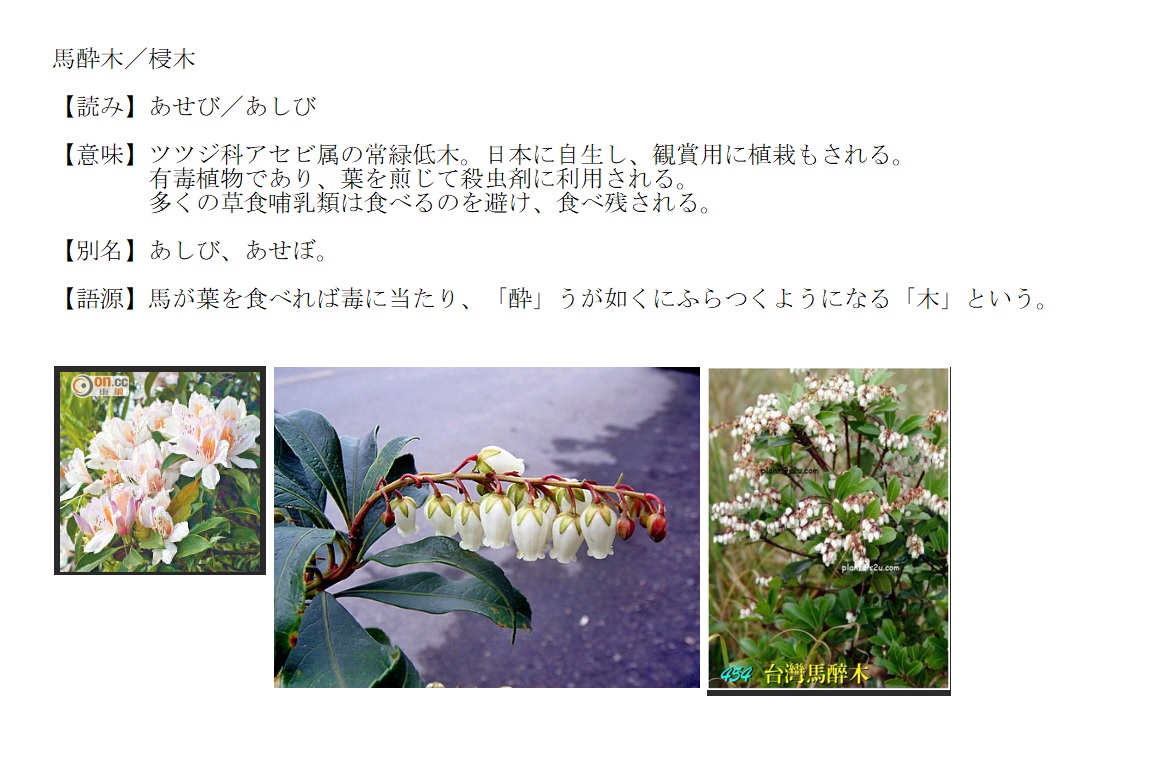 あせび/あしび | 「梫木」とも書く。ツツジ科の常緑低木 | 解説 |
