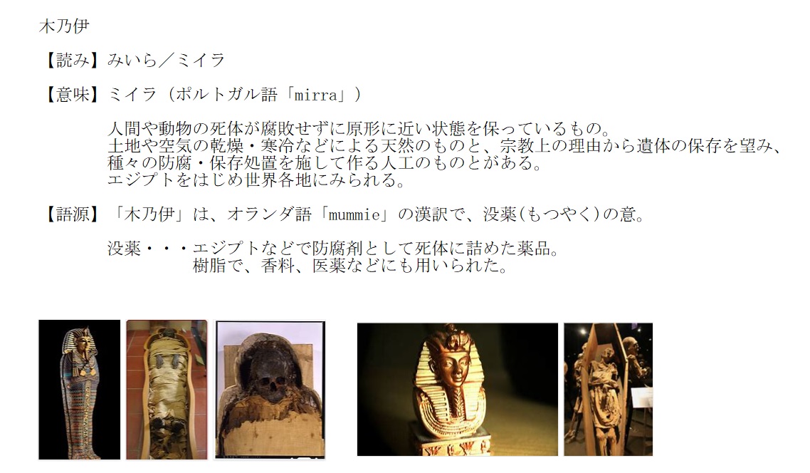 みいら | ミイラ。長期間原型を留めている死体 | 解説 |