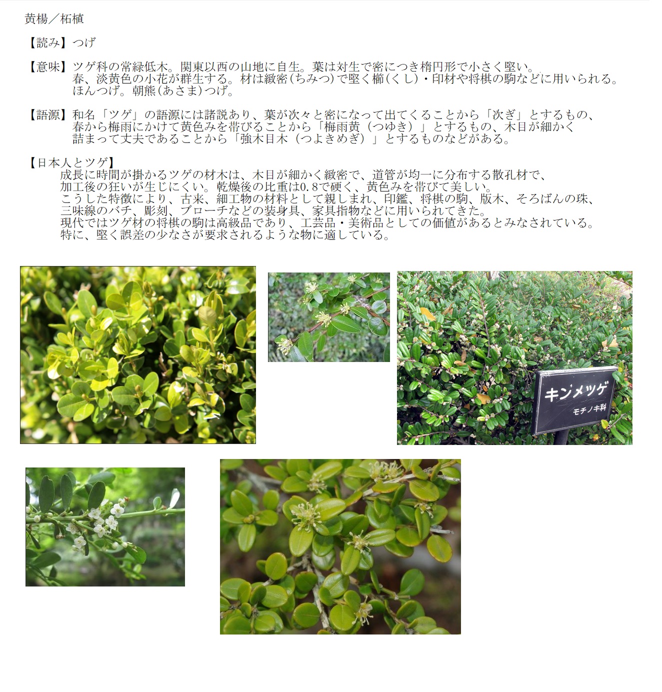 つげ | ツゲ科の常緑低木。将棋の駒などに使う | 解説 |