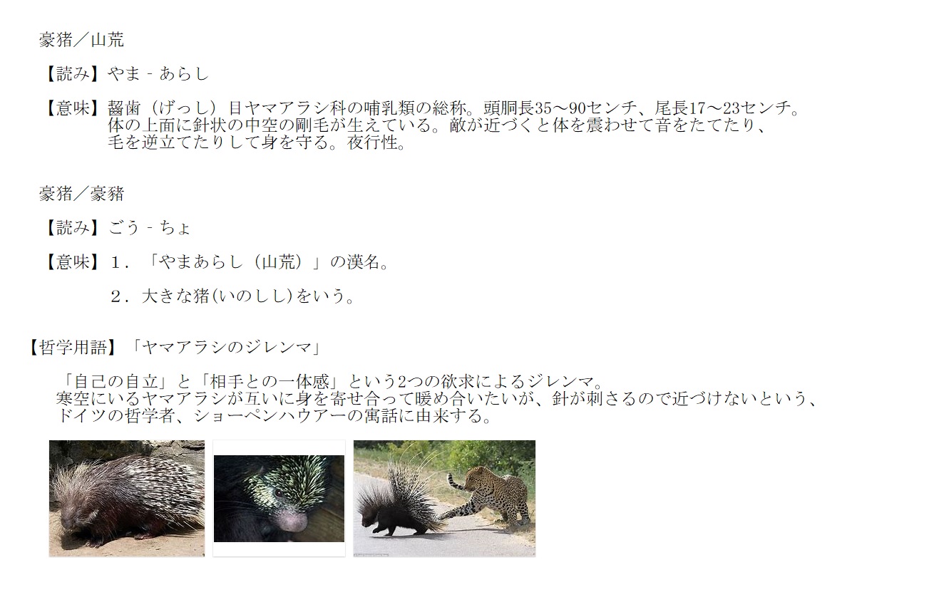 やまあらし | 齧歯目ヤマアラシ科の哺乳類の総称 | 解説 |