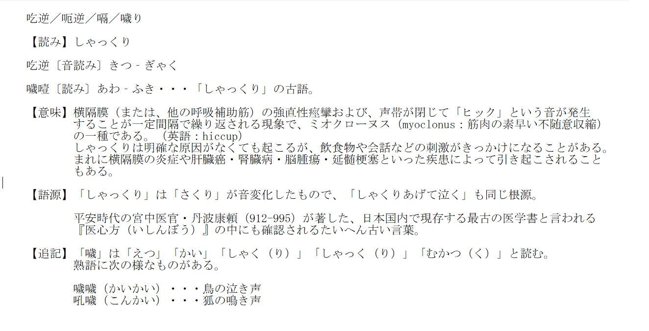 しゃっくり | 「ヒック」という音が一定間隔で繰り返される現象 | 解説 |