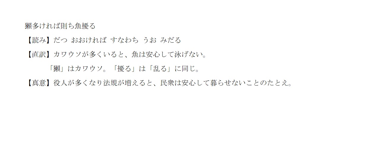 | 10 | ダツ多ければ則ち魚みだる | |