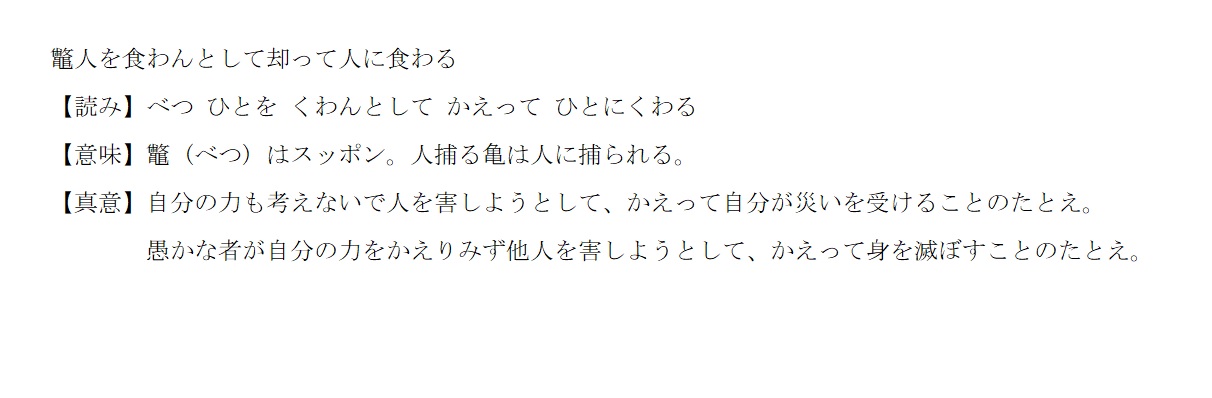 | 6 | ベツ人を食わんとして却って人に食わる | |