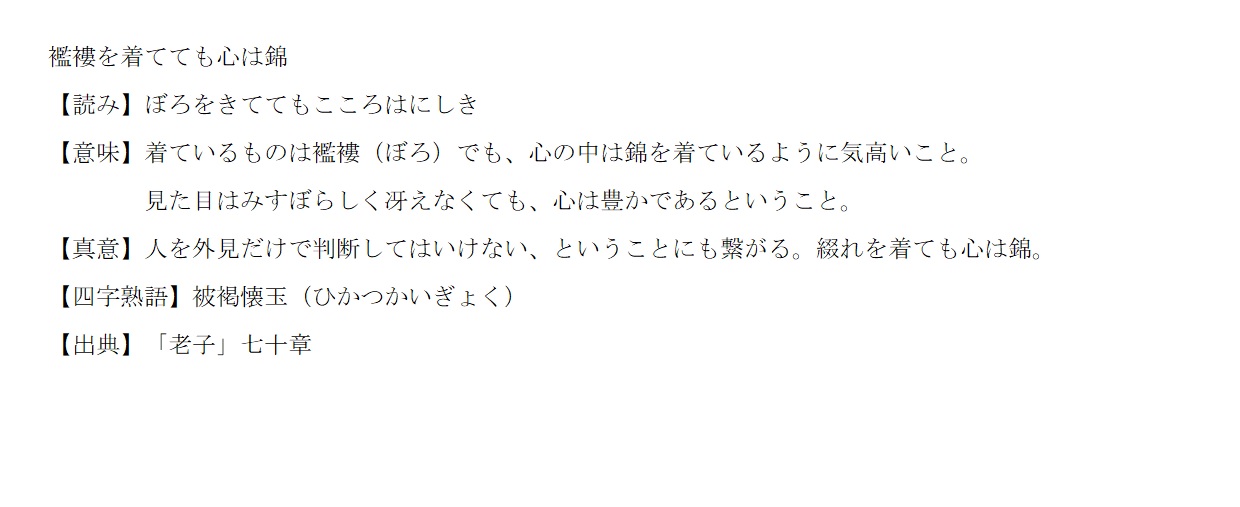 襤褸/襤縷 | 心の中は錦を着ているように気高いこと | 解説 |