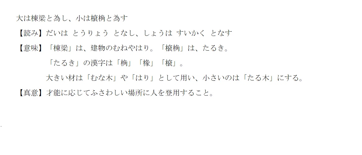 | 2 | 大は棟梁と為し、小はスイカクと為す | |