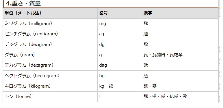 瓱 | 重さの単位。1000mg=1g | 解説 |