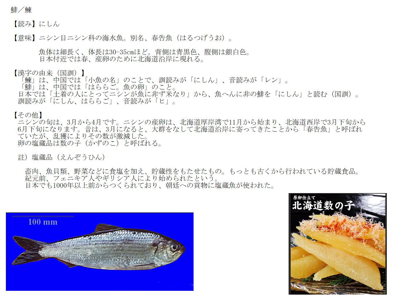 にしん | ニシン科の海水魚。春告魚 | 解説 |