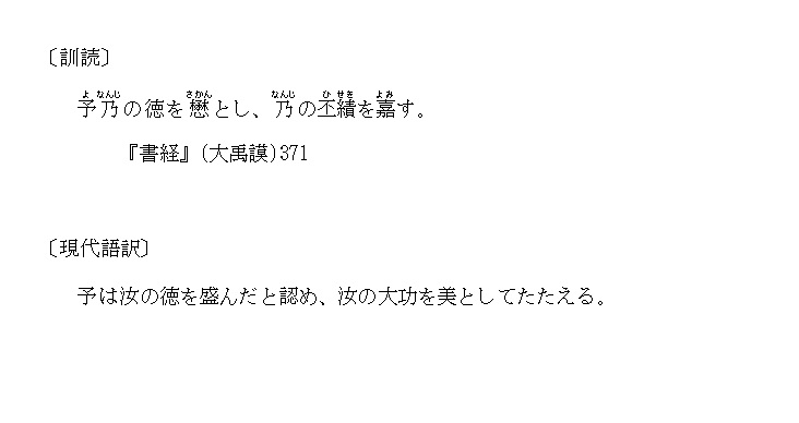 | 8 | 予乃の徳を懋んにす | |