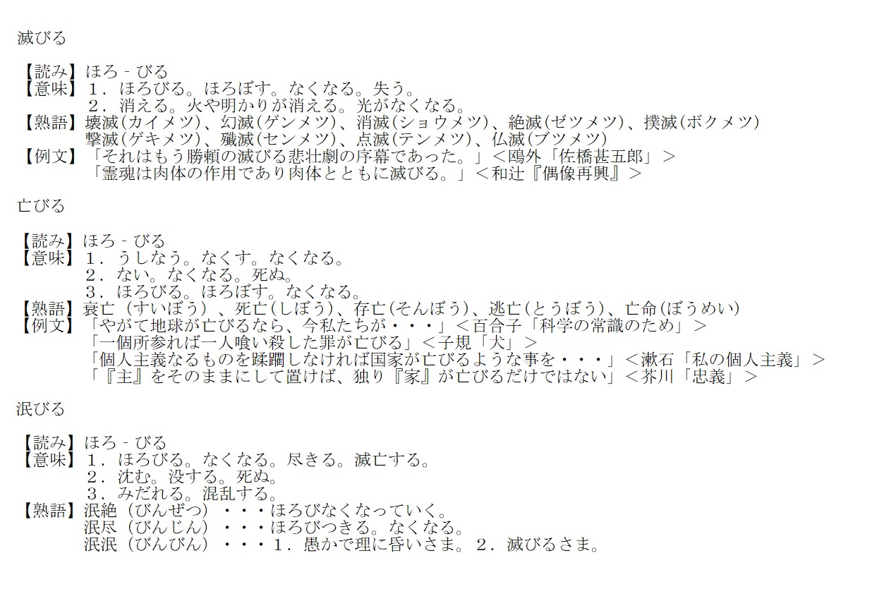 ほろ | なくする。消滅させる。また、殺す。 | 解説 |
