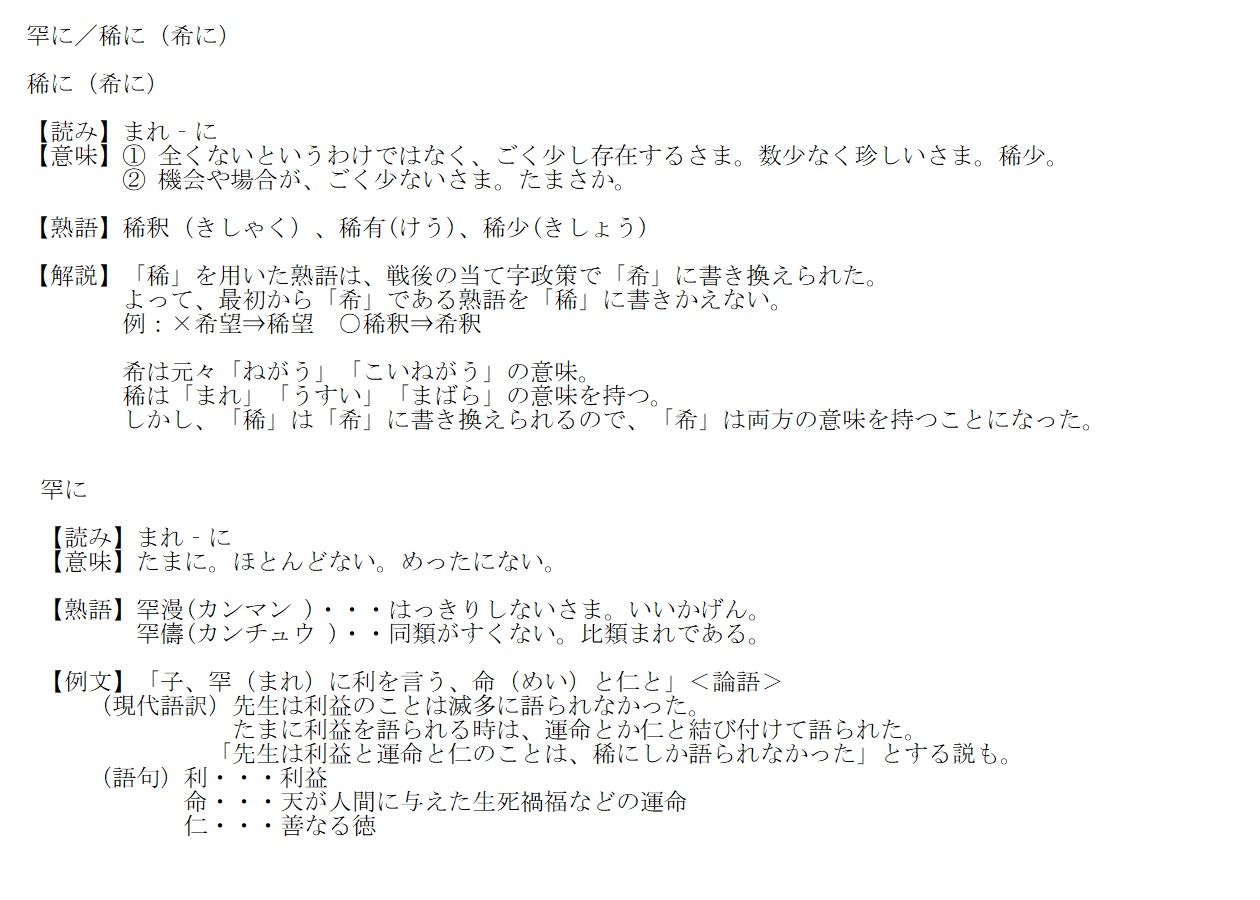 まれ | たまに。ほとんどない。めったにない。 | 解説 |