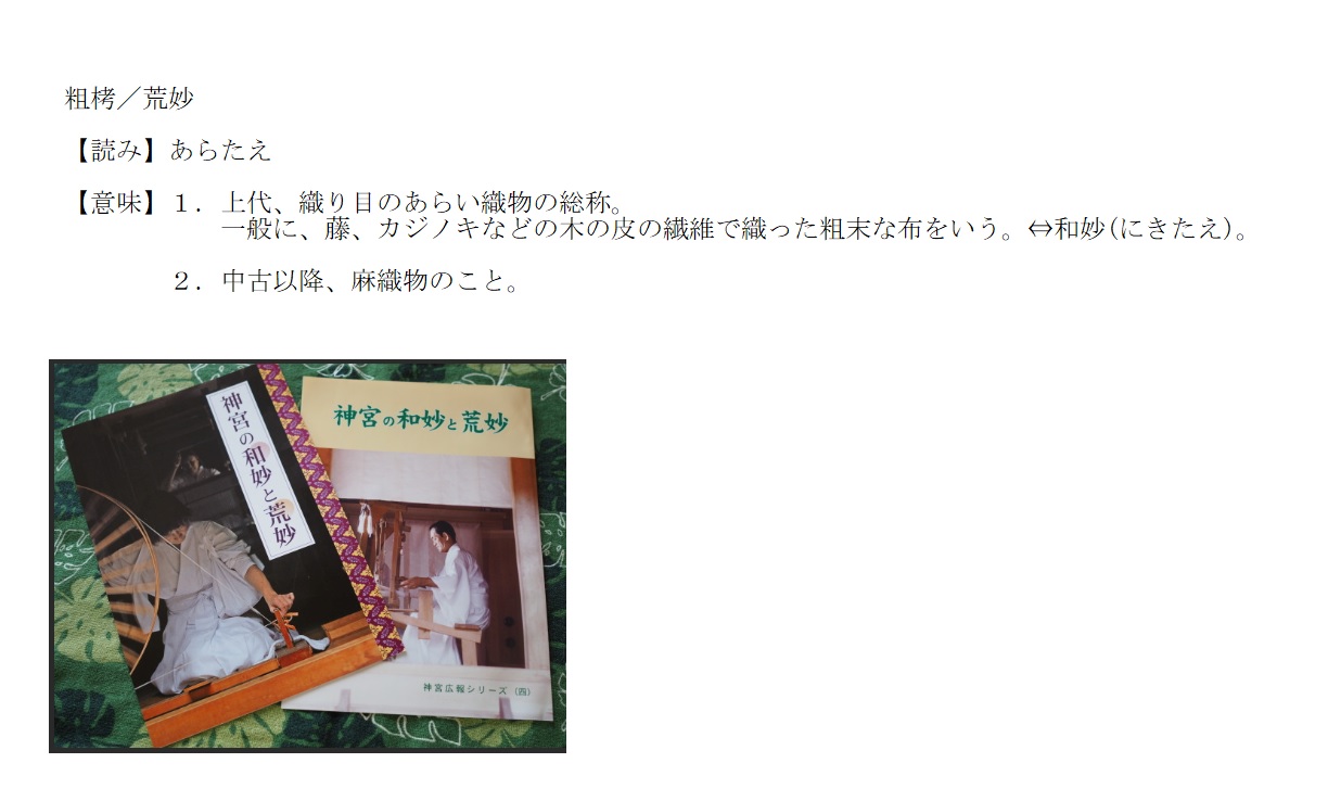 あらたえ | 木の皮の繊維で織った粗末な布。荒妙 | 解説 |