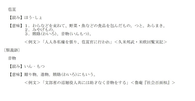 苞苴 | いんもつ ≒ ほうしょ | 解説 |
