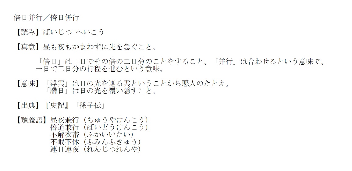 ばいじつ-へいこう | 昼夜かまわず、先を急ぐこと | 解説 |