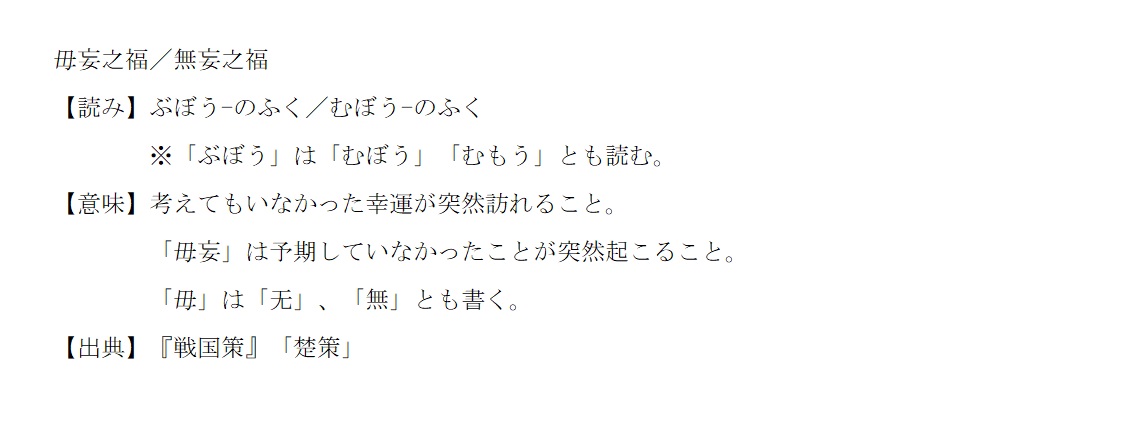 ぶぼう-のふく | 幸運が突然訪れること | 解説 |
