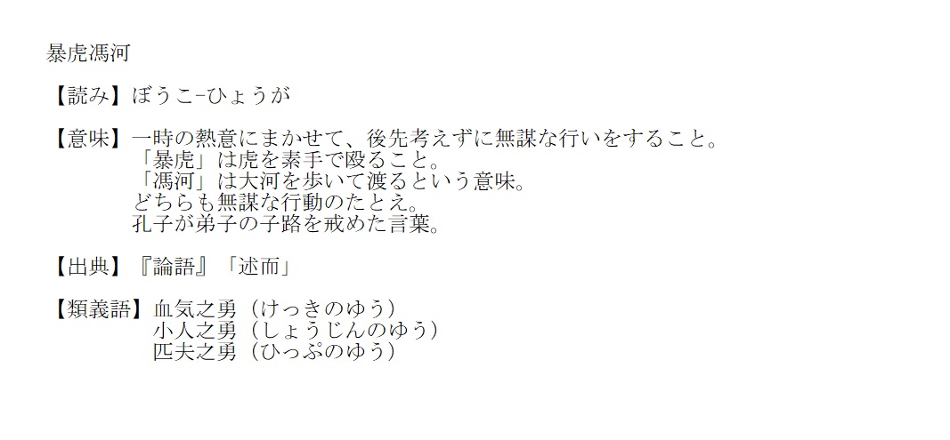 ぼうこ-ひょうが | 無謀な行いをすること | 解説 |