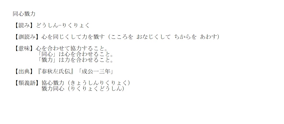 どうしん-りくりょく | 心を合わせて協力すること | 解説 |