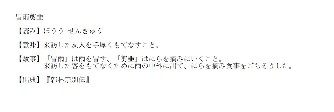 ぼうう-せんきゅう | 来訪した友人を手厚くもてなす | 解説 |