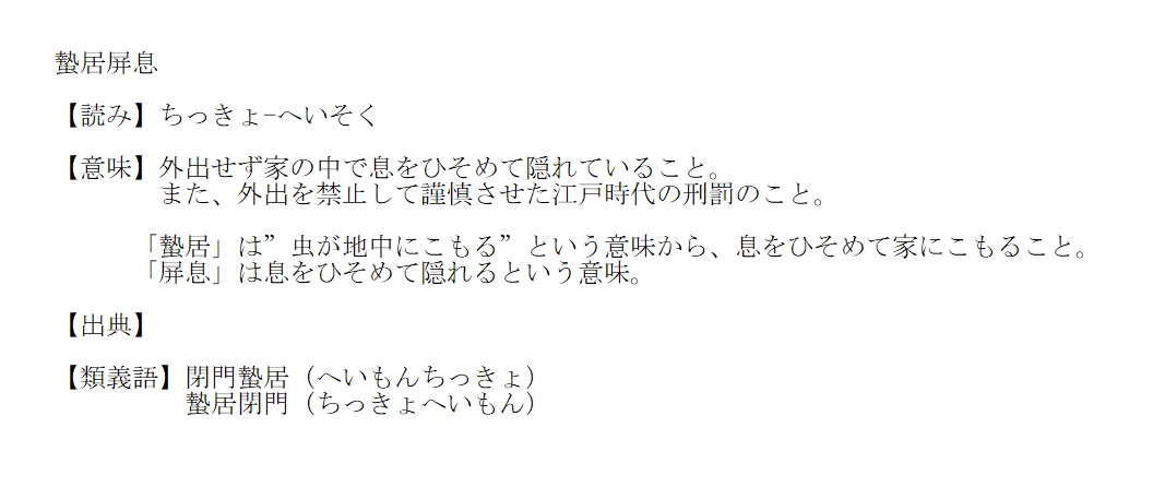 ちっきょ-へいそく | 外出せず息をひそめて隠れる | 解説 |